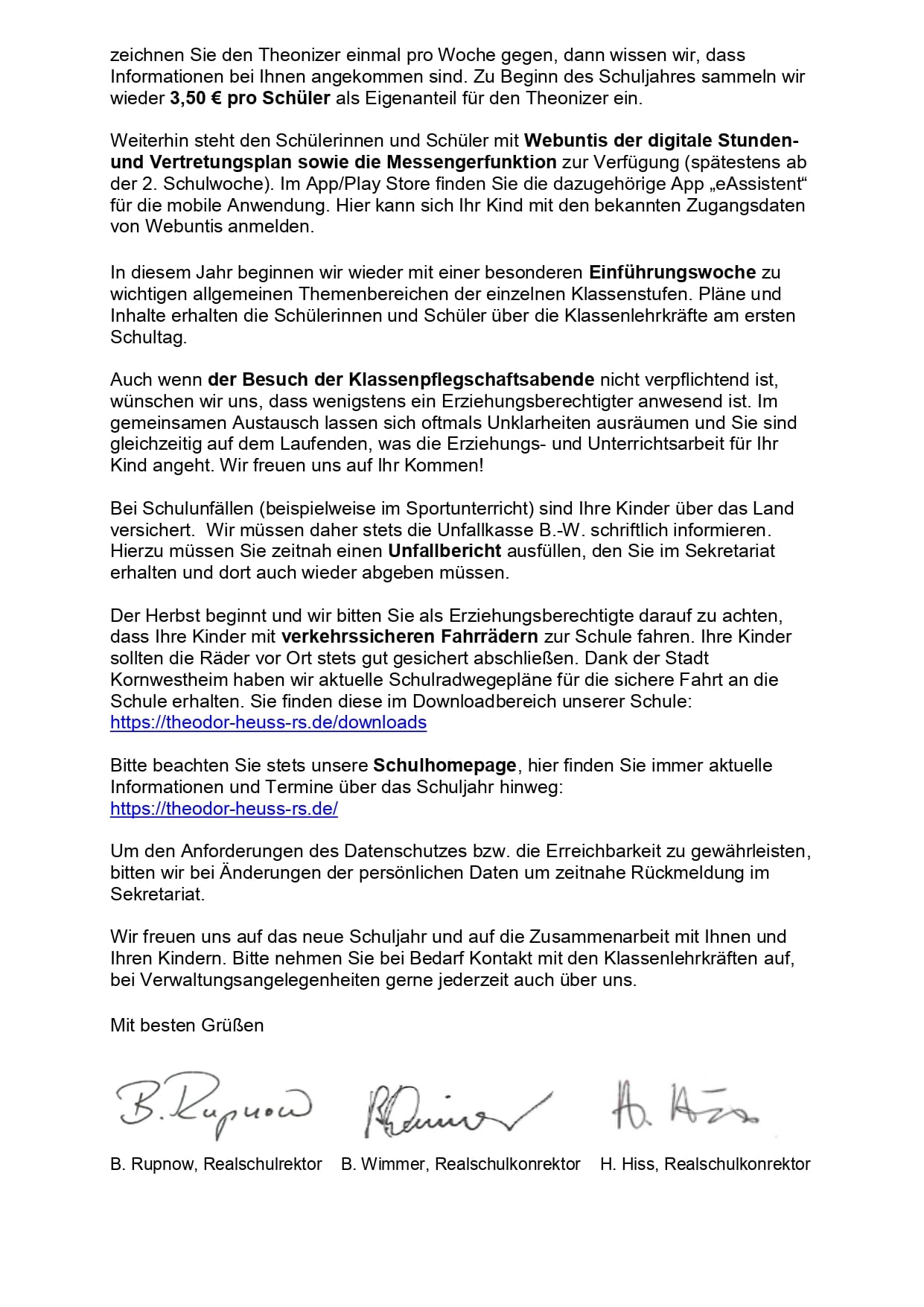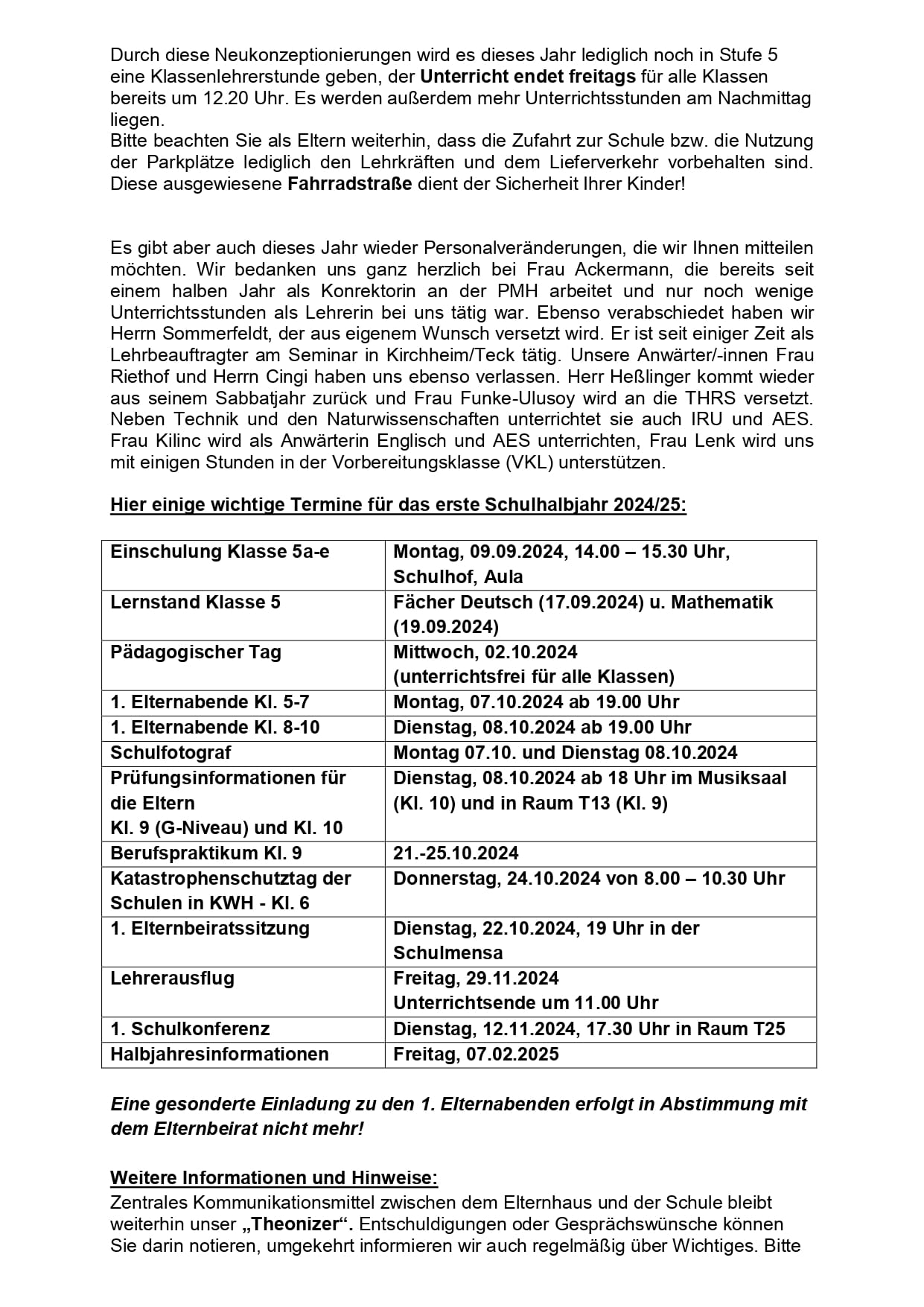 +++Info-Brief der Schulleitung zum neuen Schuljahr 2024-2025+++