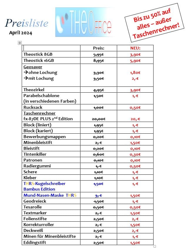 ACHTUNG: Preissenkung bei THEOffice – bis zu 50% auf alles – außer Taschenrechner!