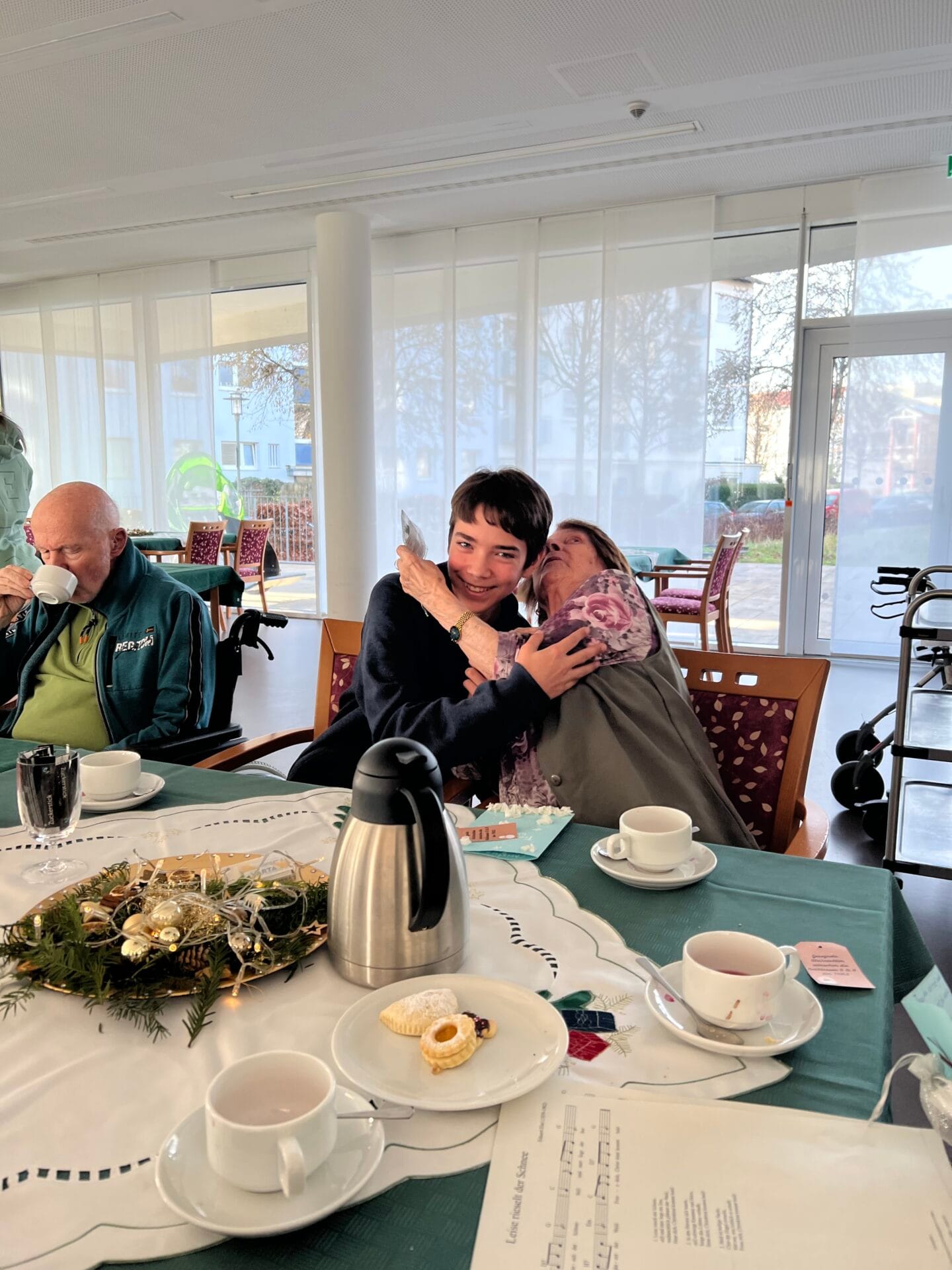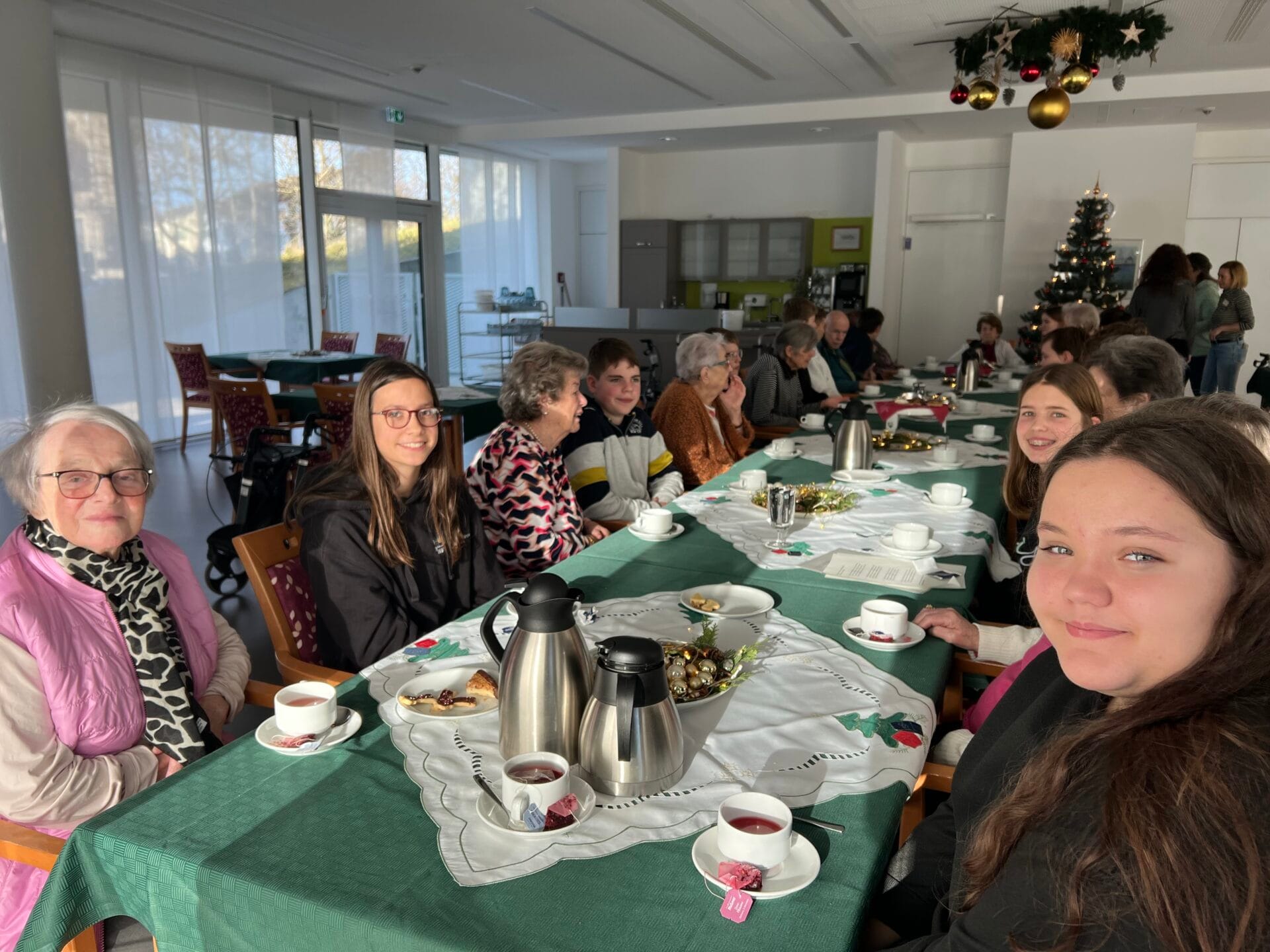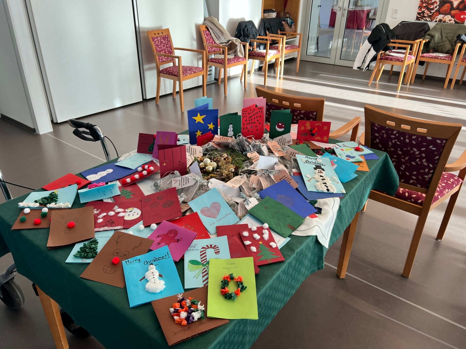 Im Rahmen des Evangelischen Religionsunterrichts bei Frau Sanseverino setzte sich die Religionsgruppe der Klasse 8a mit dem Thema Diakonie und gelebter Nächstenliebe auseinander. In Zusammenarbeit mit Fr. Faber, der Klassenlehrerin der 8a und nach mehreren Vorbereitungsstunden besuchten die Schülerinnen und Schüler am 18.12.25 das Jakob-Sigle-Heim in Kornwestheim. Die Jugendlichen haben persönliche Karten mit Bibelversen gestaltet und kleine Geschenke gebastelt. Vor Ort verbrachten sie Zeit mit den Bewohnerinnen und Bewohnern, sangen gemeinsam Lieder, tranken Tee und aßen Plätzchen. Die vorbereiteten Karten und Geschenke wurden mit großer Freude entgegengenommen. Die Begegnung verlief in wertschätzender Atmosphäre und wurde von beiden Seiten als bereichernd erlebt. Für die Schülerinnen und Schüler wurde deutlich, wie wichtig kleine Gesten der Aufmerksamkeit im Alltag sind. Das Projekt zeigte anschaulich, wie Nächstenliebe praktisch gelebt werden kann.
